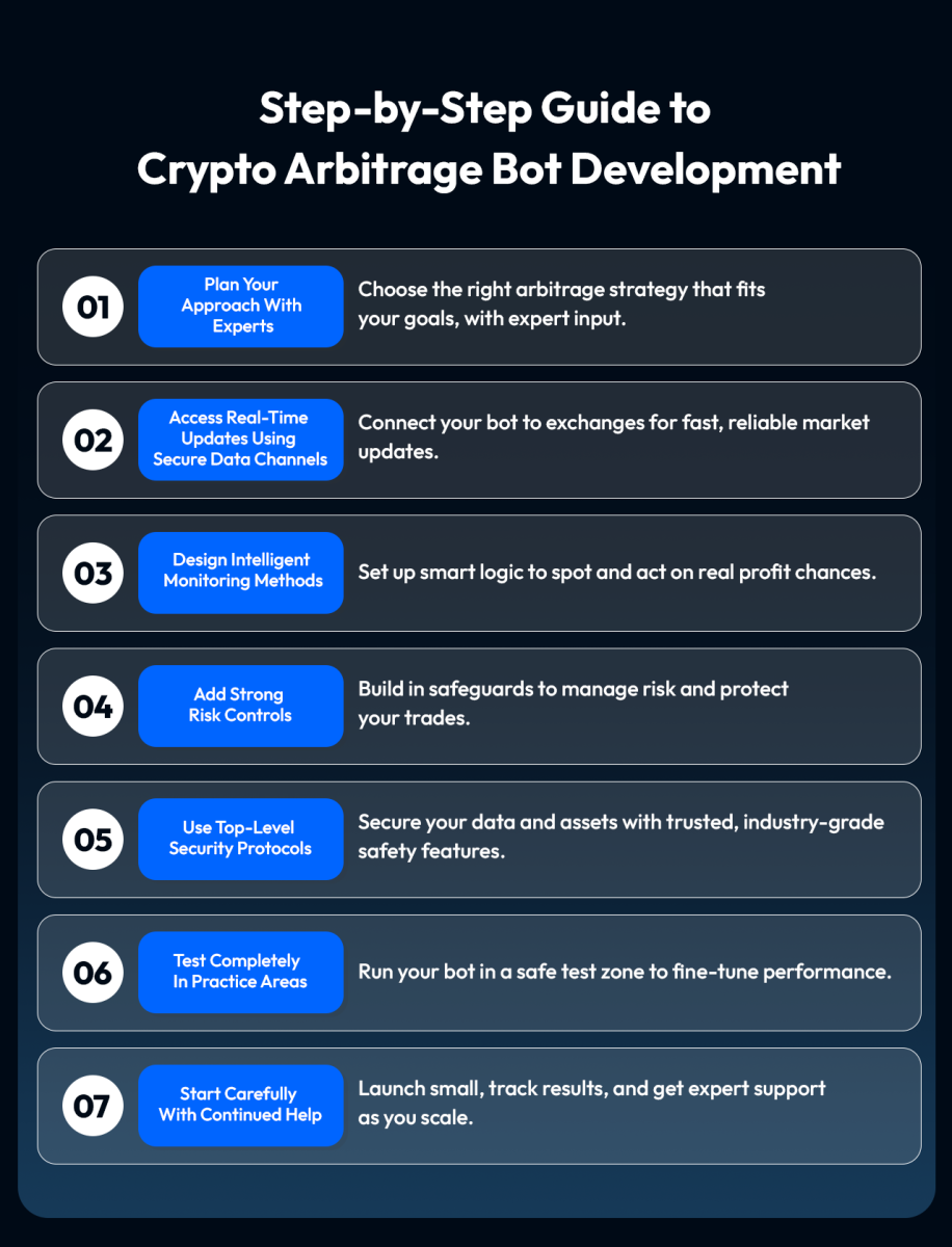 By the time you finish this blog, you’ll understand how these bots work, the types, what to expect, and get a step-by-step guide to crypto arbitrage bot development services.